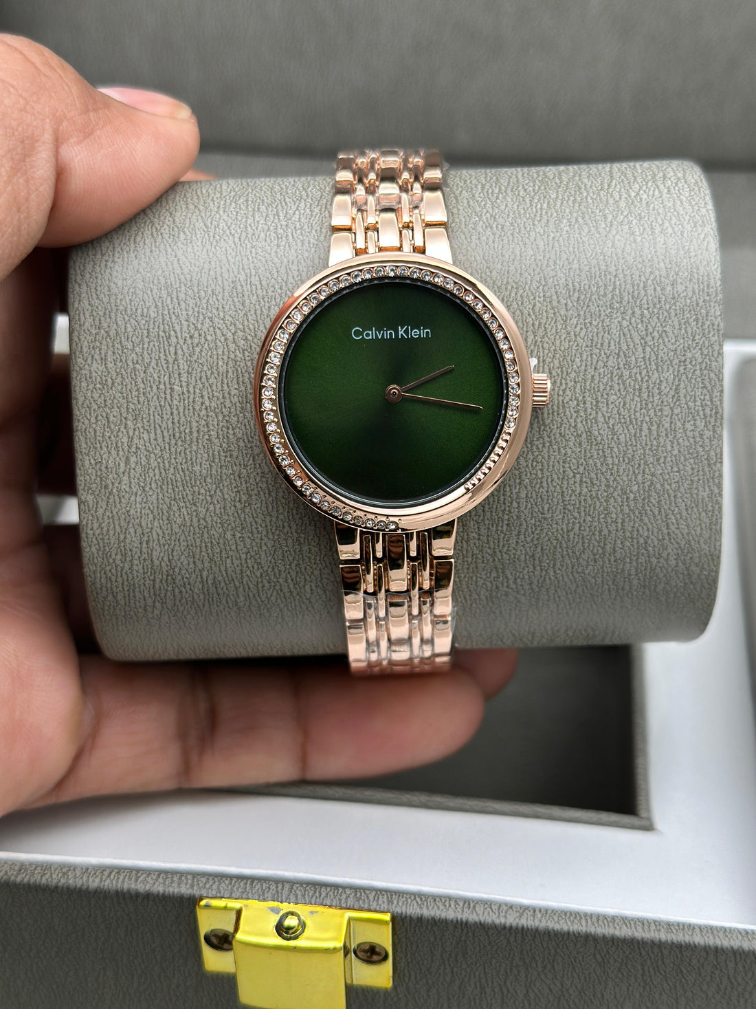 Ca_lvin Klein Inspired Twisted Bezel Green Dial Watch for Women