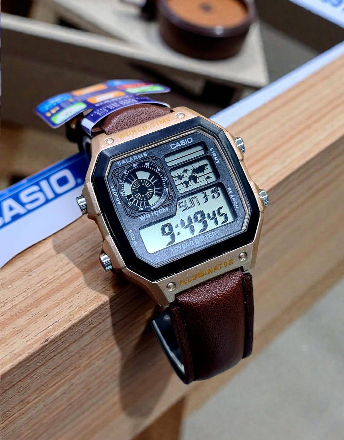 Ca_sio Inspired AE-1200WHL World Time Digital Watch (Leather Strap)